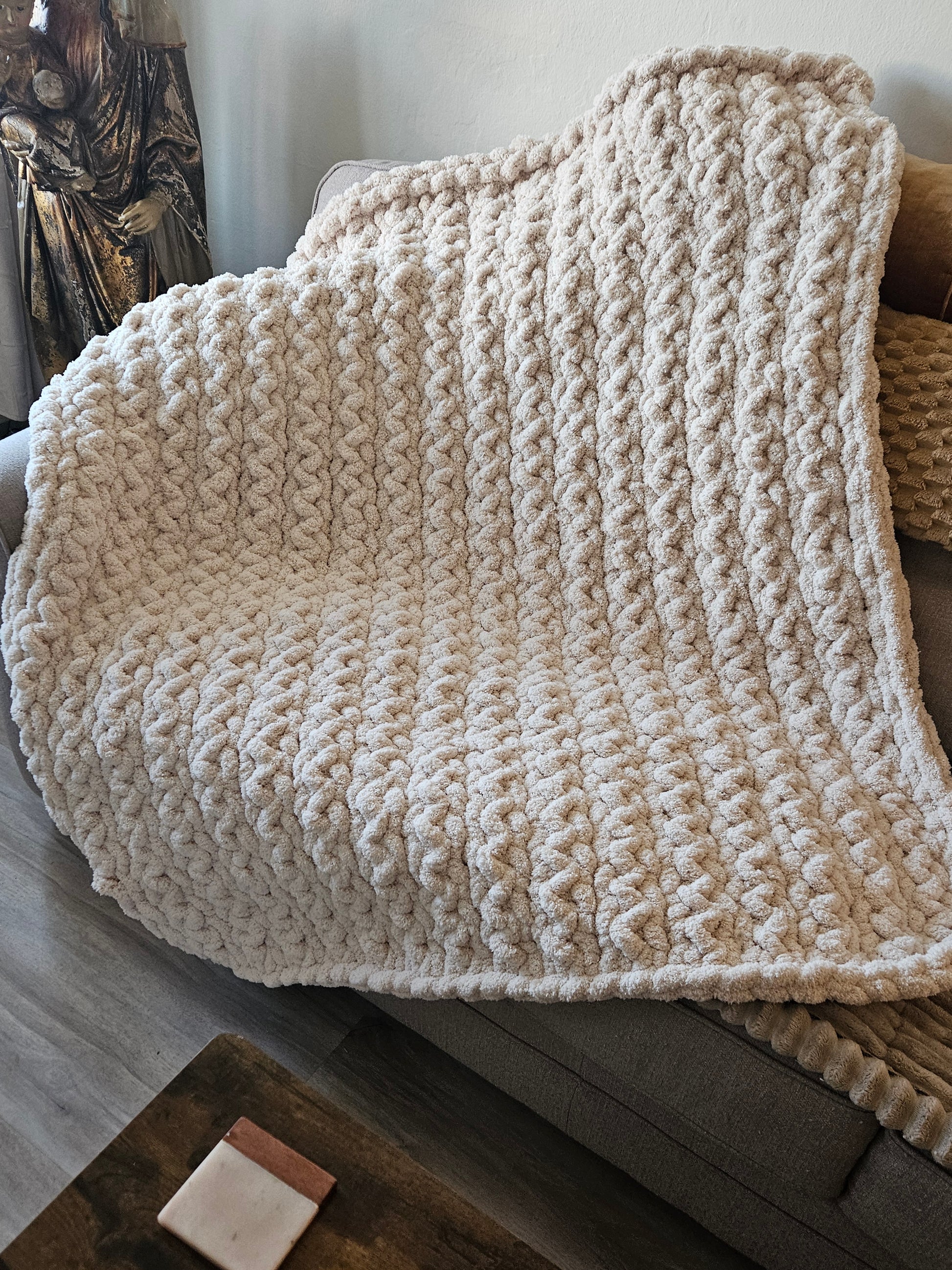 #CottageCraftCozyKnits #HandKnittedBlanket #ChunkyChenille #ChunkyBlanket #HandmadeHome #CozyHomeDecor #FarmhouseDecor #CoastalDecor #NeutralHomeDecor #HandmadeWithLove #TexturedBlanket #BrokenHerringbone #CozyLiving #SmallBusinessLove #HandcraftedComfort #CottageCraft