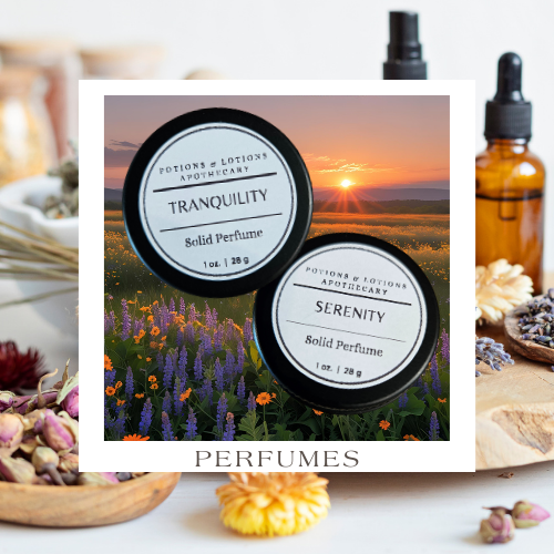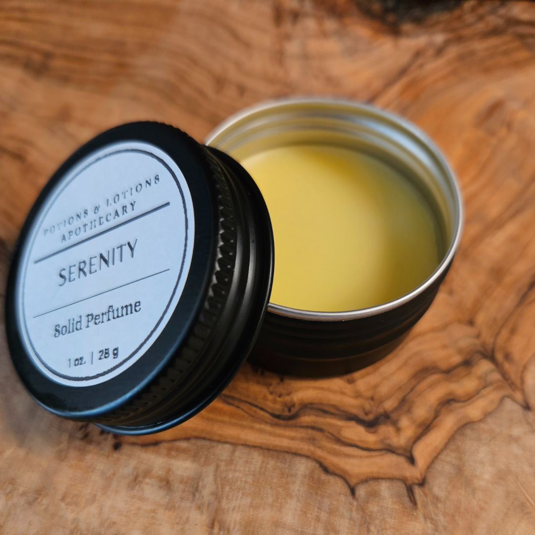 Introducing a new way to wear fragrance with our all-natural, handcrafted solid perfumes from Potions & Lotions Apothecary. Each fragrance is blended with care and comes in a sleek, one-ounce black apothecary tin, perfect for on-the-go touch-ups.