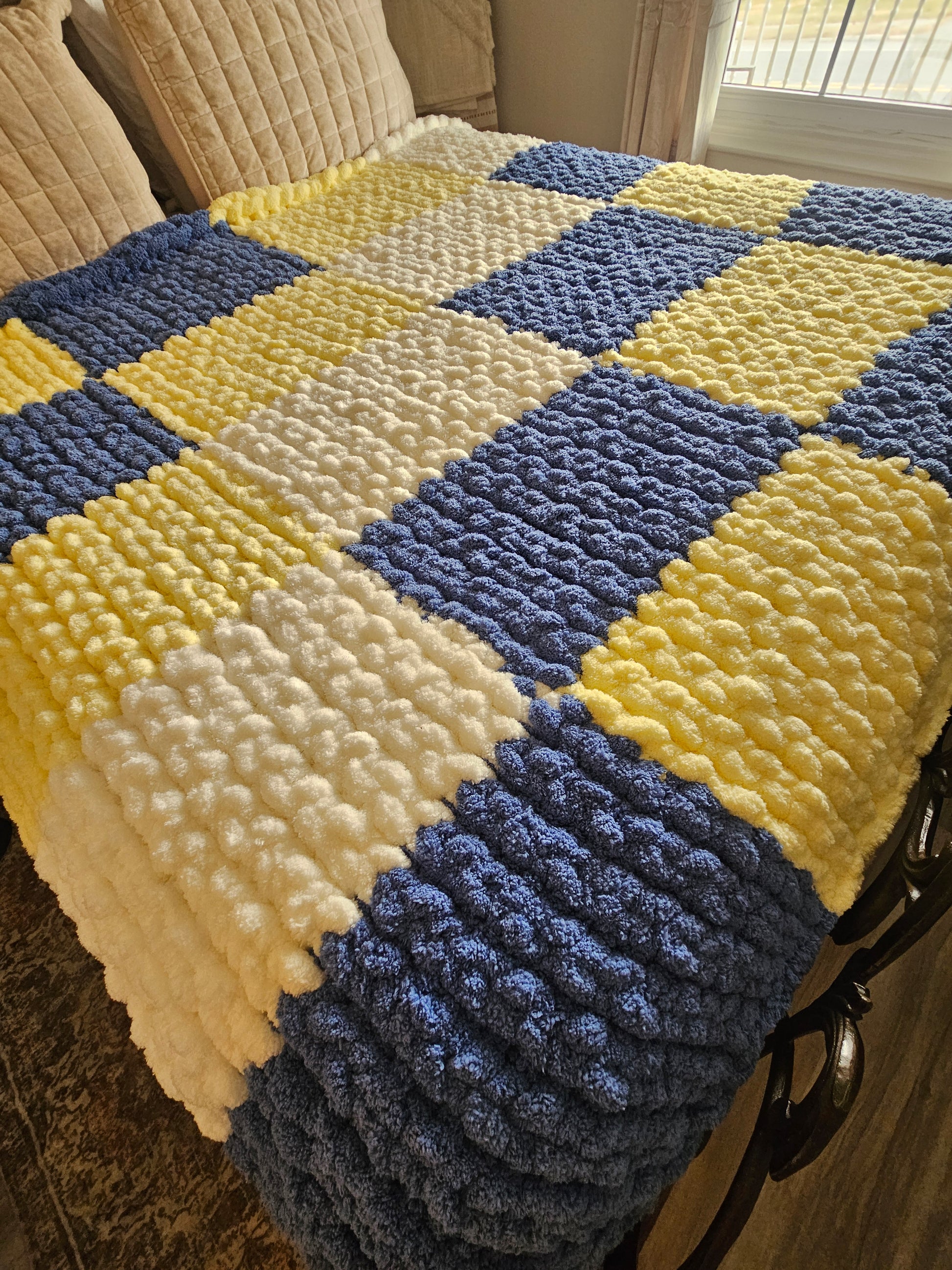 #HeirloomGingham #CottageCraftCo #ChunkyKnitBlanket #GinghamStyle #CottageCoreHome #HandmadeLuxury #BlueAndYellow #CozyHomeDecor #ArtisanMade